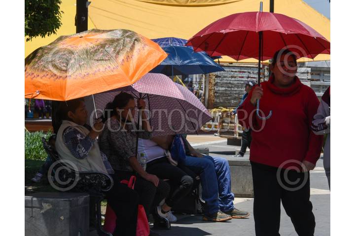 LERMA, ESTADO DE MÉXICO, 21JUNIO2023.- Las sombrillas o paraguas se han convertido en un objeto de uso diario en estos días calurosos en el Valle de Toluca, al igual que los sombreros y gorras, una forma en que se protege la población de los rayos del Sol durante esta tercera ola de calor. FOTO: CRISANTA ESPINOSA AGUILAR /CUARTOSCURO.COM