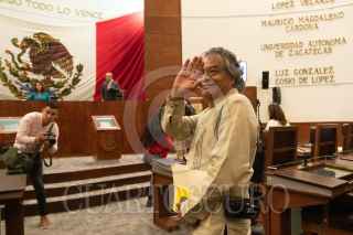 ZACATECAS, ZACATECAS, 21JUNIO2023.- En sesión solemne de la LXIV Legislatura del Estado, Pedro Valtierra Ruvalcaba, fotoperiodista y director de la Agencia y editora Cuartoscuro, fue nombrado Ciudadano Ilustre de Zacatecas. Durante la sesión, Rodrigo Reyes, secretario de Gobierno y Arturo Nahle García, presidente del Tribunal Superior de Justicia del Estado, atestiguaron el reconocimiento del fotógrafo fresnillense. FOTO: ADOLFO VLADIMIR /CUARTOSCURO.COM