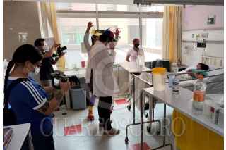 CIUDAD DE MÉXICO, 21JUNIO2023.- El Voluntariado IMSS y la Asociación Civil Doctor Payaso trabajan de la mano para acercar a pacientes pediátricos internados en hospitales un momento de diversión, con la misión de humanizar la medicina, y coadyuvar en el proceso de recuperar la salud con amor y alegría. Bajo los valores de respeto, humildad e integridad, las y los voluntarios de Doctor Payaso visitaron a niñas y niños internados en el Centro Médico Nacional (CMN) Siglo XXI, para llevarles esparcimiento mediante juegos, bromas, imitaciones y buen humor voluntarios.Alex García, mejor conocido como “Dr. Chiflón”, ha visitado diversas unidades médicas desde hace 12 años con el fin de llevar momentos de alegría y magia, en sinergia con el personal de salud; en esta ocasión fue turno de la Unidad Médica de Alta Especialidad (UMAE) Hospital de Pediatría. FOTO: IMSS/CUARTOSCURO.COM