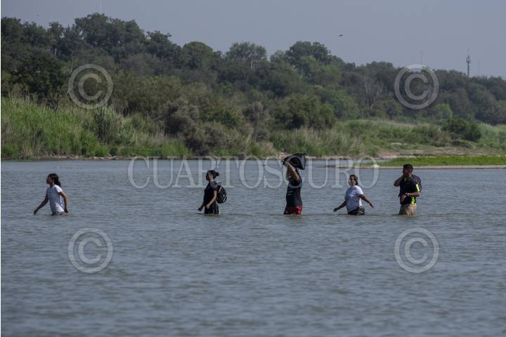 COAHUILA DE ZARAGOZA, 22JUNIO2023.- Migrantes provenientes de distintos países del continente, principalmente Venezuela y Honduras, cruzan las aguas del río bravo, a un par de kilómetros del puente internacional de la ciudad de Piedras Negras. Del otro lado del río los espera la incertidumbre en manos de la la patrulla fronteriza y los policías del condado de Maverick, en el estado de Texas. FOTO: PEDRO ANZA /CUARTOSCURO.COM