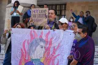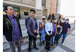 TOLUCA, ESTADO DE MÉXICO, 2023.- Integrantes de colectivos y amigos de Alejandra Monroy, acudieron en apoyo a los Juzgados Civiles y Familiares en Toluca, quien denunció violencia física, psicológica, verbal por parte de su ex pareja, a quien le teme por ser hijo de una familia influyente proveniente de Atlacomulco, exige la pensión alimenticia de su hija, dijo que ha sido amenazada para que el juicio que lleva en este momento sea concluido, pide a las autoridades que se actúe con apego a la ley. FOTO: CRISANTA ESPINOSA AGUILAR /CUARTOSCURO.COM