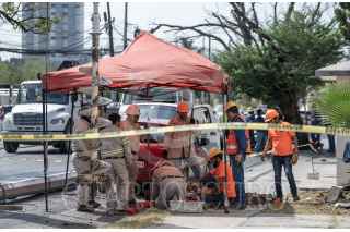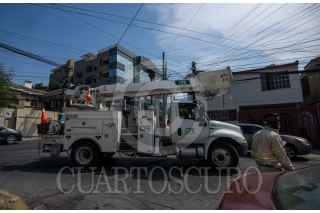 MONTERREY, NUEVO LEÓN, 22JUNIO2023.- Cuadrillas de la Comisión Federal de Electricidad trabajan en arreglar trasformadores en diversas partes de la ciudad y área metropolitana. Cientos de colonias se han quedado sin luz debido a la sobrecarga durante la ola de calor. FOTO: GABRIELA PÉREZ MONTIEL / CUARTOSCURO.COM