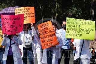 CIUDAD DE MÉXICO, 23JUNIO2023.- De manera conjunta cientos de médicos, médicas y personal de enfermería realizaron bloqueos y protestas en diversos hospitales de la capital del país para exigir la basificación y homologación de los salarios, así como el respeto a los derechos laborales. Fue frente al hospital Pediátrico Legaría que personal realizó el corte a la circulación. FOTO: GALO CAÑAS/CUARTOSCURO.COM