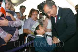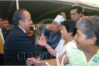 MEXICO D.F.23ABRIL2007. El presidente de los Estados Unidos Mexicanos, Felipe Calderon Hinojosa, durante la comida con motivo del dia de voceador, que tuvo lugar en la cancha ecuestre " Presidente Adolfo Ruiz Cortines " del deportivo del estado mayor presidencial. FOTO IMPERIORESENDIZ/CUARTOSCURO.COM