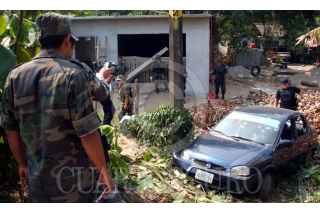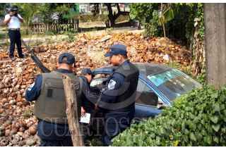 CARDENAS, TABASCO, 23ABRIL2007.- Tras una emboscada por sicarios le quitan la diva al coordinador de Operativos de la Policía Municipal Jorge Alberto González Velásquez. En el lugar de los hechos sobre las inmediaciones de la ranchería Hidalgo, revelan las autoridades ministeriales que fue encontrado un pedazo de papel con la leyenda “Síganle al juego” . FOTO: MARCO POLO GUZMÁN HERNÁNDEZ