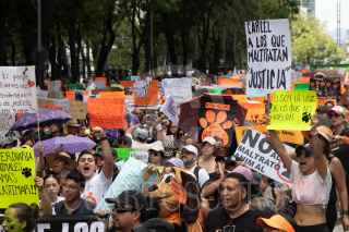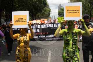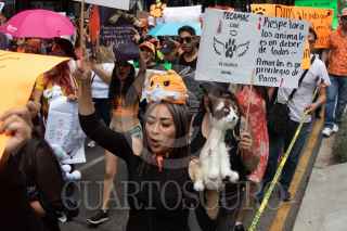 CIUDAD DE MÉXICO, 25JUNIO2023.- Personas que en defensa de los derechos de los animales o "animalistas" como ellos se hacen llamar marcharon del Ángel de la Independencia hacia el Zócalo para pedir penas más severas a las personas que maltraten o maten a animales de compañía como perros y gatos. Recordaron el caso de Scooby un perrito de 8 meses que fue aventado por un sujeto a un cazo de aceite hirviendo. FOTO: MOISÉS PABLO/CUARTOSCURO.COM