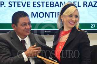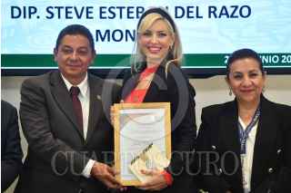 CIUDAD DE MÉXICO, 27JUNIO2023.- Steve Esteban del Raz, diputado de Morena, encabezó la entrega reconocimiento a Isabel Madow, actriz y modelo, por su trayectoria como líder de impacto social. El evento fue realizado en el Auditorio Heberto Castillo de la Cámara de Diputados. FOTO: MARIO JASSO/CUARTOSCURO.COM