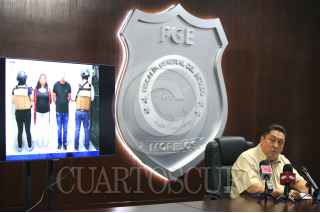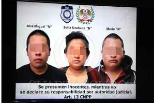 TEMIXCO, MORELOS, 28JUNIO2023.- Conferencia de prensa de Uriel Carmona Gándara, fiscal general de Justicia de Morelos, en la que informó sobre la detención de tres presuntos secuestradores que operaban en el municipio de Huitzilac, en la zona limítrofe con la Ciudad de México. José Miguel "N", Sofia Geobana "N" y Mario "N" son las personas detenidas, luego de que el 2 de junio presuntamente secuestraran a una pareja que se detuvo en la zona de bosque de la carretera federal México-Cuernavaca; después de robarles sus pertenencias fueron llevados a una zona boscosa desde donde llamaron con los equipos telefónicos de las victimas a sus familiares para pedir una suma de dinero para dejarlos en libertad. Las víctimas acudieron después de estos hechos a denunciarlos ante la FGM, la cual llevó a cabo investigaciones que derivaron en la detención de los integrantes de la banda de los "Cachuchas". El fiscal señaló que, por la edad de los detenidos, entre los 20 y 25 años, se trata de una nueva generación de delincuentes. FOTO: MARGARITO PÉREZ RETANA / CUARTOSCURO.COM