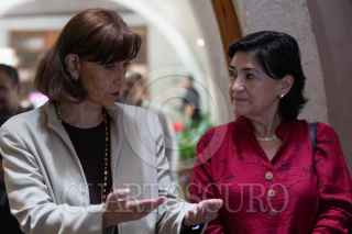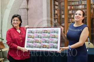 CIUDAD DE MÉXICO, 28JUNIO2023.- Susana López Charretón, miembro de El Colegio Nacional, y Sofía Lara Salazar, encargada de relaciones públicas de la Lotería Nacional, encabezaron la presentación del billete conmemorativo por los 80 años de El Colegio Nacional. FOTO: MOISÉS PABLO/CUARTOSCURO.COM