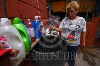 SAN ANTONIO LA ISLA, ESTADO DE MÉXICO, 28JUNIO2023.- Habitantes de San Antonio la Isla exigieron hablar con la presidenta municipal Lizeth Sandoval ante la problemática que existe en este municipio por el agua potable, algunos ciudadanos se quejan de la carencia del vital líquido en sus hogares y en otros casos les ha llegado agua pero con tierra, la mayoría de los vecinos han tenido que ocupar agua de garrafón utilizando al menos 6 al día para realizar sus labores cotidianas en el hogar, lo que golpea severamente a sus bolsillos, piden se restablezca el servicio de agua potable lo más pronto posible. FOTO: CRISANTA ESPINOSA AGUILAR /CUARTOSCURO.COM