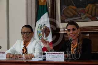 CIUDAD DE MÉXICO, 28JUNIO2023.- Luis Rodríguez Bucio, subsecretario de Seguridad Pública; Nadine Gasman, titular del Instituto Nacional de las Mujeres; Rosa Icela Rodríguez, secretaria de Seguridad Pública y Protección Ciudadana (SSPPC); Evelyn Salgado Pineda, gobernadora de Guerrero, y Fabiola Alanís Sámano, Comisionada Nacional para Prevenir y Erradicar la Violencia contra las Mujeres, encabezaron la conferencia para presentar el Informe Mensual del Grupo Interinstitucional de la estrategia nacional de protección para las mujeres, niñas, niños, adolescentes y adultas mayores que viven violencias basadas en el Género (GIEV). FOTO: GALO CAÑAS/CUARTOSCURO.COM