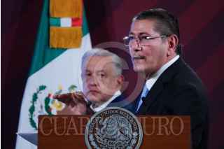 CIUDAD DE MÉXICO, 29JUNIO2023.- Andrés Manuel López Obrador, presidente de México, en compañía de: Roberto Salcedo Aquino, secretario de la Función Pública; Félix Medina Padilla, titular de la Procuraduría Fiscal de la Federación, y Alfredo Higuera Bernal, titular de la Fiscalía Especializada en materia de Delincuencia Organizada de la FGR, y Leonel Cota Montaño, director general de Seguridad Alimentaria Mexicana (Segalmex), encabezaron la conferencia de prensa matutina en que dieron detalles sobre el caso de corrupción al interior de Segalmex, así como de las acciones legales ya implementadas para sancionar a quienes resulten responsables. FOTO: GALO CAÑAS/CUARTOSCURO.COM