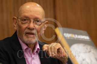 CIUDAD DE MÉXICO, 29JUNIO2023.- Miguel Pastrana Flores, Patricia Ledesma Bouchan, Eduardo Matos Moctezuma, y Salvador Rueda Smithers, presentaron el catálogo "Coyolxauhqui. A 45 años de su descubrimiento, una memoria del monumento y del Templo Mayor". Los ponente señalaron que esta publicación cuenta con el espíritu festivo de la exposición alusiva, la cual ha superado los 200 mil visitantes y que continúa en el Templo Mayor. FOTO: MOISÉS PABLO/CUARTOSCURO.COM