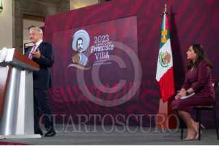 Cuauhtémoc, Ciudad de México, México, 30 de junio de 2023. Andrés Manuel López Obrador, presidente Constitucional de los Estados Unidos Mexicanos en conferencia de prensa matutina en el Salón Tesorería de Palacio Nacional. Lo acompaña Laura Elena Carrillo Cubillas, directora ejecutiva de la Agencia Mexicana de Cooperación Internacional para el Desarrollo (Amexcid). Foto: Presidencia