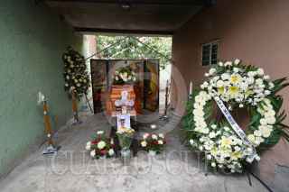 BUENAVISTA TOMATLÁN, MICHOACÁN, 30JUNIO2023.- Sin operativo de seguridad en La Ruana se realizó el funeral del exlíder de las autodefensas en Michoacán Hipólito Mora, asesinado el día de ayer. El cuerpo fue velado en su casa pese a las amenazas de muerte a su familia, al pie del ataúd se colocó una foto de Hipólito Mora con la frase “nosotros nos levantamos porque ya no teníamos nada que perder”. Hipólito Mora y sus escoltas fueron asesinados por hombres armados mientras se encontraba en una calle de la localidad de La Ruana. Posteriormente, los agresores le prendieron fuego a la camioneta en la que viajaban las víctimas. FOTO: JUAN JOSÉ ESTRADA SERAFÍN/CUARTOSCURO.COM