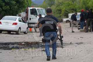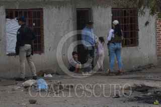 BUENAVISTA TOMATLÁN, MICHOACÁN, 30JUNIO2023.- A más de 24 horas del asesinato del ex líder de autodefensas michoacanas Hipólito Mora, en La Ruana, agentes de la Fiscalía General del Estado (FGE) han comenzado a supervisar la calle donde se llevó a cabo la ejecución donde también murieron sus dos escoltas. Un convoy de 15 camionetas con policías de investigación y agentes antinarcóticos arribaron al pueblo lo que sorprendió a los vecinos que no habían tenido ninguna presencia policíaca durante todo el día. Los elementos acordonaron el cruce de las calles Hiquíngare y Fray Diego de Bazalenque, entrando a distintas casas para buscar posibles rastros que sirvan para la investigación. FOTO: JUAN JOSÉ ESTRADA SERAFÍN/CUARTOSCURO.COM