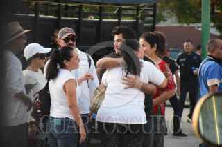 TÚXTLA GUTIÉRREZ, CHIAPAS, 30JUNIO2023.- Los 16 trabajadores secuestrados de la Secretaría de Seguridad y Protección Ciudadana (SSPPC) fueron finalmente liberados en el libramiento sur del estado. En un camión de tres toneladas fue abandonado a unas cuantos metros de base de esta dependencia. Las y los administrativos fueron recibidos entre abrazos y un fuerte operativo de seguridad por sus familiares. FOTO: DAMIÁN SÁNCHEZ/CUARTOSCURO.COM