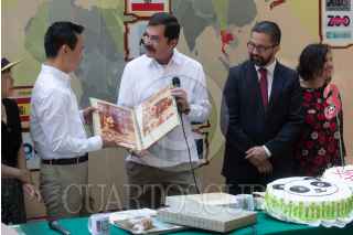 CIUDAD DE MÉXICO, 01JULIO2023.- Fernando Gual Sill, director general de Zoológicos y Conservación de la Fauna Silvestre, y Zhang Run, embajador de China en México, encabezaron en el zoológico de Chapultepec la celebración de los 33 años de edad de la panda gigante Xin-Xin. FOTO: MARIO JASSO/CUARTOSCURO.COM
