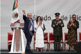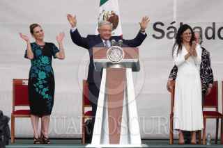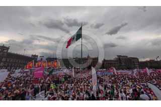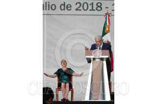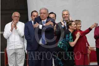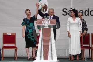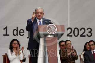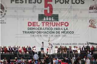 CIUDAD DE MÉXICO, 01JULIO2023.- Andrés Manuel López Obrador, presidente de México, acompañado de su esposa Beatriz Gutiérrez Müller y el gabinete de la 4T, encabezaron el Festejo por los 5 años del Triunfo Democrático para la Transformación de México realizado en el Zócalo capitalino. FOTO: GRACIELA LÓPEZ /CUARTOSCURO.COM