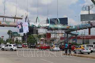 TUXTLA GUTIÉRREZ, 02JULIO2023.- Amigos y familia de Nayeli Cyrene Cinco Martínez colgaron dos mantas y una lona en el puente Mactumatzá, ubicado en el boulevard Belisario Domínguez, para exigirle al gobierno estatal su localización, esto a diez días de que fuera secuestrada por un grupo armado señaló su madre. FOTO: DAMIÁN SÁNCHEZ/CUARTOSCURO.COM