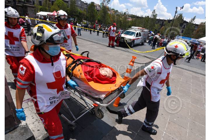 TOLUCA, ESTADO DE MÉXICO, 02JULIO2023.- Como parte de la celebración del Día Internacional del Socorrista se llevó a acabo una demostración de las actividades que se llevan a cabo en Cruz Roja, como rescate vertical, extracción vehicular, clase de RCP, demostración de búsqueda con binomio canino, así como toma de signos vitales, entre otras cosas actividades como una forma de informar a la población de todos los servicios que se ofrecen en esta institución, las actividades se llevaron en la avenida Independencia frente a Catedral de Toluca. FOTO: CRISANTA ESPINOSA AGUILAR /CUARTOSCURO.COM