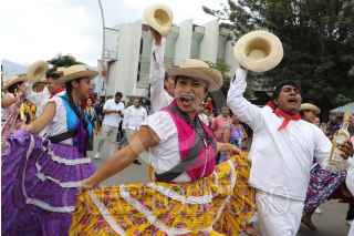 OAXACA, OAXACA, 02JULIO2023.- La tarde de este domingo se realizó un convite para anunciar el inicio de la fiestas de julio, mes de la Guelaguetza en la ciudad de Oaxaca. El gobernador del estado, Salomón Jara Cruz y funcionarios públicos, acompañaron la calenda que contó con un fuerte dispositivo de seguridad con policías estatales vestidos de civil. FOTO: CAROLINA JIMÉNEZ/CUARTOSCURO.COM
