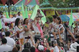 MOTUL, YUCATÁN, 02 JULIO2023.- La ex jefa de gobierno de la ciudad de México y actual aspirante a la candidatura de Morena, Claudia Sheinbaum, visitó esta tarde el municipio de Motul donde fue recibida por cientos de simpatizantes. FOTO: MARTÌN ZETINA/CUARTOSCURO.COM