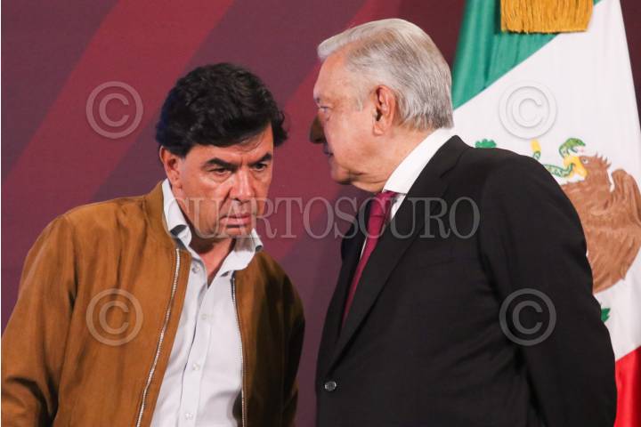 CIUDAD DE MÉXICO, 03JULIO2023.- Andrés Manuel López Obrador, Presidente de México, encabezó la mañanera en donde se trató el tema del Tren Maya. Los acompañaron los gobernadores Rutilio Escandón y Carlos Manuel Merino Campos. FOTO: MOISÉS PABLO/CUARTOSCURO.COM