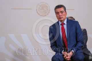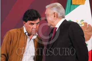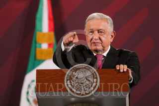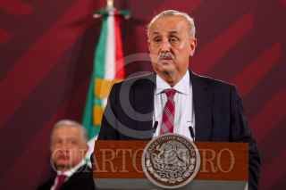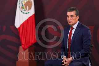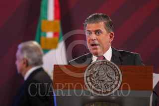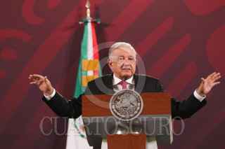 CIUDAD DE MÉXICO, 03JULIO2023.- Andrés Manuel López Obrador, Presidente de México, encabezó la mañanera en donde se trató el tema del Tren Maya. Los acompañaron los gobernadores Rutilio Escandón y Carlos Manuel Merino Campos. FOTO: MOISÉS PABLO/CUARTOSCURO.COM