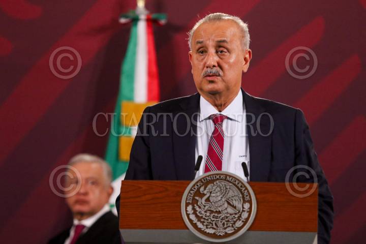 CIUDAD DE MÉXICO, 03JULIO2023.- Andrés Manuel López Obrador, Presidente de México, encabezó la mañanera en donde se trató el tema del Tren Maya. Los acompañaron los gobernadores Rutilio Escandón y Carlos Manuel Merino Campos. FOTO: MOISÉS PABLO/CUARTOSCURO.COM