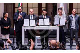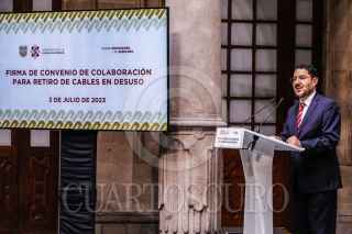 CIUDAD DE MÉXICO. 03JULIO2023.- El Jefe de Gobierno, Martí Batres Guadarrama, encabeza la Firma de Convenio de Colaboración para retiro de cables en desuso. También estarán presentes la secretaria de Gestión Integral de Riesgos y de Protección Civil de la Ciudad de México, Myriam Urzúa Venegas; el titular de la Agencia Digital de Innovación Pública, José Antonio Peña Merino; el director general nacional de la CANIETI, Alfredo Pacheco Vásquez; el director general de la ANATEL, Gabriel Székely Sánchez; el vicepresidente nacional de Asuntos Regulatorios y Jurídicos de la CANIETI, Gonzalo Martínez Pous, además de representantes de empresas telefónicas y de servicio por cable. FOTO: GOBIERNO DE LA CIUDAD/CUARTOSCURO.COM