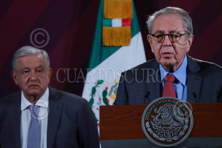 CIUDAD DE MÉXICO, 04JULIO2023.- Andrés Manuel López Obrador, presidente de México, en compañía de: Jorge Alcocer, secretario de Salud; Leticia Ramírez, secretaria de Educación Pública; Hugo López-Gatell, subsecretario de Prevención y Promoción de la Salud, y Zoé Robledo, titular del Instituto Mexicano del Seguro Social (IMSS), encabezaron la conferencia matutina con motivo del informe de salud y de continuar la difusión de la campaña de prevención de las adicciones "Si te drogas, te dañas". FOTO: GALO CAÑAS/CUARTOSCURO.COM