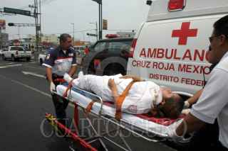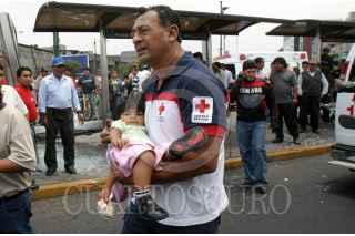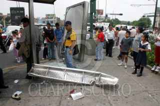 MÉXICO, D.F., 26ABRIL2007.- Un auto compacto atropelló alrededor de diez personas entre ellos menores de edad que esperaban el trasporte publico en un parabus sobre las avenidas paseo de la reforma y eje1 norte, el responsablefue detenido por elementos de la SSP. FOTO: PEDRO MARRUFO/CUARTOSCURO.COM