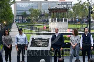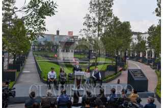 TOLUCA, ESTADO DE MÉXICO, 04JULIO2023.- Alfredo del Mazo Maza Gobernador del Estado de México acompañado por Ivett Tinoco García y Rafael Díaz Leal Barrueta, Secretarios de Cultura y Desarrollo Urbano y Obra, Verónica Valdés González, Presidenta del Patronato Pro Centro Histórico de Toluca AC y Raymundo Martínez Carbajal alcalde de Toluca, encabezó la entrega de la remodelación de la Plaza González Arratia, siendo intervenidos más de 7 mil m2 con una inversión de 50 MDP, convirtiendo este espacio en área verde, restauración del Quiosco, juegos infantiles, sala de exposiciones, foro al aire libre, dando una nueva cara al Centro Histórico de Toluca. FOTO: CRISANTA ESPINOSA AGUILAR /CUARTOSCURO.COM