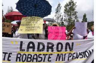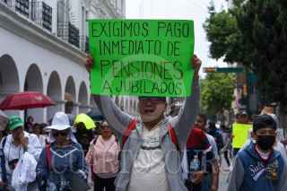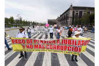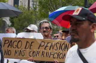 TOLUCA, ESTADO DE MÉXICO, 06JULIO2023.- Jubilados, Pensionados y Pensionistas del ISSEMYM se movilizaron en la ciudad de Toluca ante la falta de pagos, partieron de las Torres Bicentenario, pasaron a la Cámara de Diputados local y culminaron en Palacio de Gobierno, a unos meses de que termine su administración Alfredo del Mazo Maza Gobernador mexiquense le exigen el pago inmediato de sus pensiones y jubilaciones, así como se agilicen los trámites, denuncian desabasto de medicamentos y exigen una auditoría urgente al ISSEMYM. FOTO: CRISANTA ESPINOSA AGUILAR /CUARTOSCURO.COM