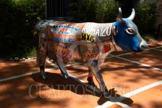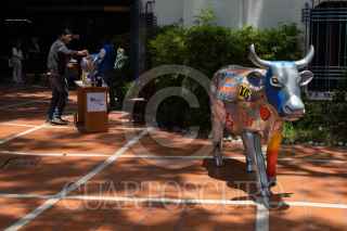 CIUDAD DE MÉXICO, 06JULIO2023.- Paul Zarkin, presidente de CowParade México; Haydeé Olvera León, jefa de mediosy patrocinios de Grupo Lala; Mario Soto, director general de CowParade México, y Yesterman, artista de CowParade México, durante la conferencia de Cow Parade 2023 que se instalará como ya es tradición en avenida Reforma del 23 de julio al 3 de septiembre. Tras su gira las famosas vacas intervenidas son subastadas y lo recaudado es donado a instituciones de beneficencia pública y privada. FOTO: MOISÉS PABLO/CUARTOSCURO.COM