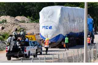 CANCÚN, QUINTANA ROO, 08JULIO2023.- Durante las primeras horas, el primer vagón que operará en el Tren Maya ingresó a territorio de Quintana Roo tras un recorrido de mil 600 kilómetros desde Ciudad Sahagún, Hidalgo, hasta el taller que se encuentra ubicado a la altura del Aeropuerto de Cancún. Punto donde se llevará a cabo su ensamblaje y posteriormente las pruebas estáticas. La Gobernadora Mara Lezama acudió al recibimiento, donde diálogo con el personal que está a cargo del traslado y de las obras. A su vez, el titular del Fondo Nacional de Fomento al Turismo, Javier May, detalló que a partir de agosto comenzarán a recorrer la ruta Cancún-Mérida como parte de las pruebas dinámicas. Los tres vagones que faltan ya cruzan el estado de Yucatán, y estarían llegando en el transcurso de mañana domingo. FOTO: ELIZABETH RUIZ/CUARTOSCURO.COM
