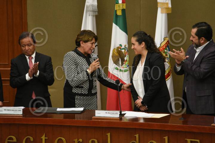 TOLUCA, ESTADO DE MÉXICO, 08JULIO2023.- Delfina Gómez recibió su Constancia de Mayoría que la acredita como Gobernadora electa del Estado de México para el periodo 2023-2029 por el Instituto Electoral del Estado de México (IEEM). FOTO: CRISANTA ESPINOSA AGUILAR /CUARTOSCURO.COM