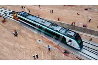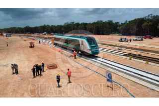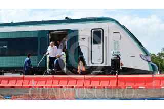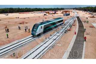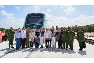 CANCÚN, QUINTANA ROO, 08JULIO2023.- El presidente Andrés Manuel López Obrador encabezó el arribo y la colocación del primer vagón del Tren Maya. El mandatario estuvo acompañado por: Mara Lezama, gobernadora de Quintana Roo; Diego Prieto, titular del Instituto Nacional de Antropología e Historia (INAH); Daniel Chávez Morán, fundador de Grupo Vidanta, así como de Juan Pablo De Botton, subsecretario de Egresos de la Secretaria de Hacienda, por mencionar algunos. Los tres vagones faltantes llegarán el día de mañana y sostendrán pruebas dinámicas hasta el 1ero de septiembre del presente año. FOTO: PRESIDENCIA/CUARTOSCURO.COM