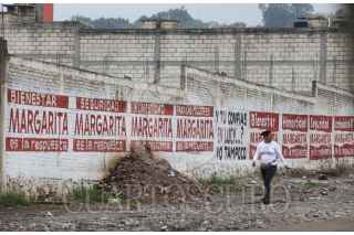CUERNAVACA, MORELOS, 09JULIO2023.- Propaganda de Margarita González Saravia para obtener la candidatura a la gubernatura por el Movimiento de Regeneración Nacional en una calle de la colonia precarista Universo al oriente de la capital del estado. FOTO: MARGARITO PÉREZ RETANA / CUARTOSCURO.COM