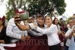 GUADALAJARA, JALISCO, 09JULIO2023.- Claudia Sheinbaum, ex jefa de gobierno de la Ciudad de México, encabezo una asamblea informativa con motivo de la definición de la Coordinación de Defensa de la Cuarta Transformación, misma que se llevo a cabo en la Plaza Juárez de esta ciudad. FOTO: FERNANDO CARRANZA GARCIA / CUARTOSCURO.COM