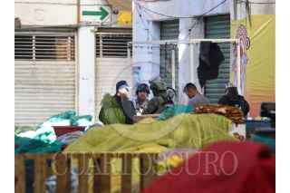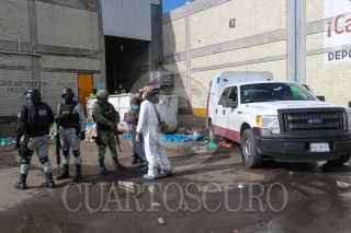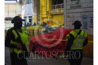 TOLUCA, ESTADO DE MÉXICO, 10JULIO2023.- Se registra un incendio en la Central de Abastos de Toluca durante la madrugada, con un saldo de 9 muertos, entre ellos dos menores de edad, algunas versiones indican que un grupo armado fue el causante de esta desgracia. Una perrita que anda en la zona también fue herida, los comerciantes la cuidaron en espera de que fuera atendida. FOTO: CRISANTA ESPINOSA AGUILAR /CUARTOSCURO.CON
