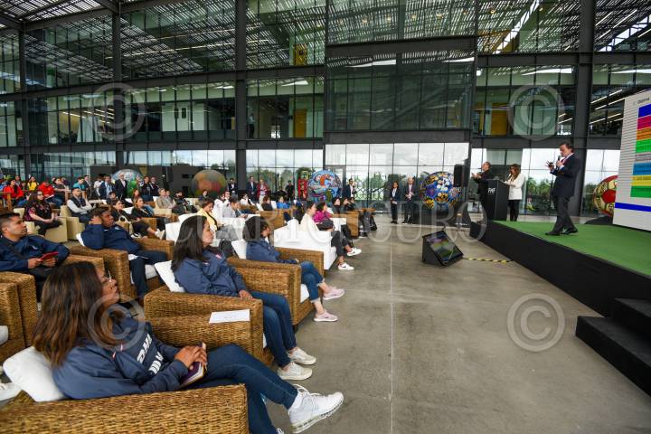TOLUCA, ESTADO DE MÉXICO, 10JULIO2023.- Mikel Arriola Peñalosa, presidente de la Liga BBVA MX, Juan Carlos Rodríguez, Comisionado Presidente de la FMF, Leonardo Valdez Director de Capital Humano FEMEXFUT, Chris Gruenberg abogado y Mariana Gutiérrez Directora de la Liga MX Femenil durante la presentación del Protocolo Modelo de la FMF, Liga MX y Clubes afiliados para Prevenir y Sancionar el Acoso y Hostigamiento Sexual y otras formas de discriminación en el ámbito laboral y deportivo del fútbol mexicano. FOTO: CRISANTA ESPINOSA AGUILAR /CUARTOSCURO.COM