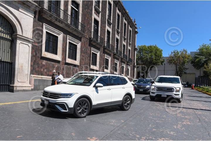 TOLUCA, ESTADO DE MÉXICO, 11JULIO2023.- Delfina Gómez Gobernadora electa del Estado de México sostuvo una reunión a puerta cerrada con Alfredo del Mazo Maza Gobernador mexiquense en Palacio de Gobierno, estuvo acompañada por Horacio Duarte, Higinio Martínez, Maurilio Hernández y parte de su equipo de transición, para definir los detalles de entrega-recepción. Al término de la reunión salió en su camioneta sin dar declaración alguna. FOTO: CRISANTA ESPINOSA AGUILAR/CUARTOSCURO.COM