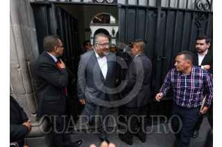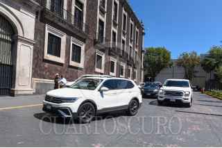 TOLUCA, ESTADO DE MÉXICO, 11JULIO2023.- Delfina Gómez Gobernadora electa del Estado de México sostuvo una reunión a puerta cerrada con Alfredo del Mazo Maza Gobernador mexiquense en Palacio de Gobierno, estuvo acompañada por Horacio Duarte, Higinio Martínez, Maurilio Hernández y parte de su equipo de transición, para definir los detalles de entrega-recepción. Al término de la reunión salió en su camioneta sin dar declaración alguna. FOTO: CRISANTA ESPINOSA AGUILAR/CUARTOSCURO.COM