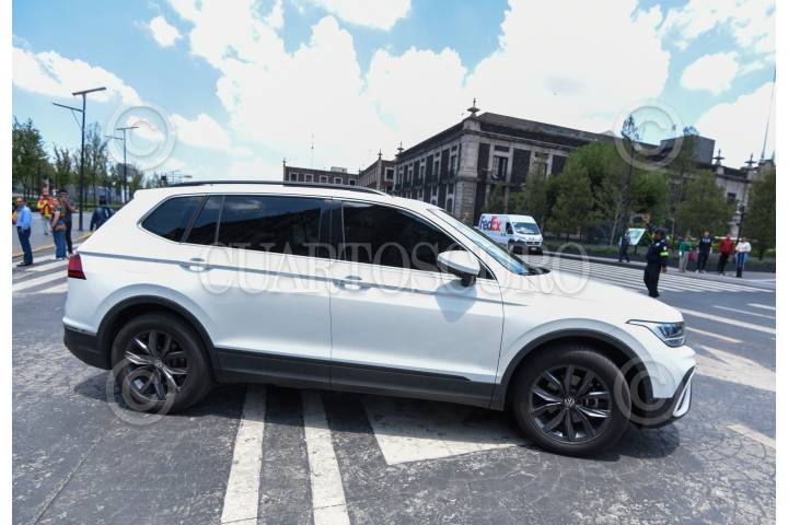 TOLUCA, ESTADO DE MÉXICO, 11JULIO2023.- Delfina Gómez Gobernadora electa del Estado de México sostuvo una reunión a puerta cerrada con Alfredo del Mazo Maza Gobernador mexiquense en Palacio de Gobierno, estuvo acompañada por Horacio Duarte, Higinio Martínez, Maurilio Hernández y parte de su equipo de transición, para definir los detalles de entrega-recepción. Al término de la reunión salió en su camioneta sin dar declaración alguna. FOTO: CRISANTA ESPINOSA AGUILAR/CUARTOSCURO.COM