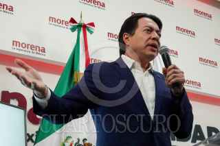 CIUDAD DE MÉXICO, 11JULIO2023.- Mario Delgado, presidente nacional de Movimiento de Regeneración Nacional (Morena), ofreció conferencia de prensa para tocar los temas de las declaraciones de José Ángel Gurría respecto al precio del dólar y la elección de los ministros de la corte. Asimismo, destacó que recibió cartas por parte de Malú Michel, Ricardo Monreal y Gerardo Fernández Noroña en dónde hacian un llamado de atención para deter la colocación de espectaculares, bardas y demás propaganda política que no está siendo declarada o fiscalizada. Estableció que hoy mismo hará un llamado a las "corcholatas" para detener estás acciones. FOTO: GALO CAÑAS/CUARTOSCURO.COM