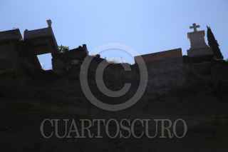 CUERNAVACA, MORELOS, 11JULIO2023.- Decenas de personas que viven en la colonia Los Pilares se encuentran en peligro debido al inicio de la temporada de lluvias. Los vecinos que viven en lo que fuera una mina de arena y bajo un paredón que amenaza con caer, manifestaron que las autoridades del municipio no ayudan a resolver su problemática y tampoco los autorizan para que lo resuelvan. Valentín Gorostieta, representante de la colonia, denuncio que las autoridades del municipio obstaculizan la solución de su problema con tecnicismos y burocracia. Ante el inicio del temporal de lluvias manifestó que viven con el temor de que se reblandezca la tierra y se venga abajo. El pasado 14 de septiembre un deslave de piedras y arena desprendido del paredón afecto varias casas, provocando la muerte de dos personas y varios heridos. FOTO: MARGARITO PÉREZ RETANA / CUARTOSCURO.COM