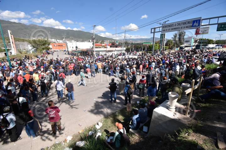 CHILPANCINGO, GUERRERO, 11JULIO2023.- Por segundo día consecutivo pobladores del Circuito Azul y la Montaña bloquearon la Autopista del Sol y marcharon hacia la Sede del Poder Ejecutivo (Palacio de Gobierno). Tras una reunión con autoridades estatales, los comisarios y transportistas del circuito Río Azul, y municipios aledaños, los manifestantes liberaron a los 13 servidores públicos detenidos desde ayer por la tarde y retiraron el bloqueo del punto conocido como Parador del Marques. También entregaron la unidad blindada ‘Black Mamba’, a la cual le poncharon los cuatro neumáticos, asi como cargadores útiles de las armas de los policías, a los cuales, aseguraron, “no les decomisamos armas, se las regresamos, esto lo recogimos como prueba de que violaron todos los protocolos y traían armas de fuego para usar contra nosotros”. Guillermo Matías Marrón, presidente de la Unión de Comisarios, indicó que después de las protestas en la Autopista, el Congreso y Palacio de Gobierno no lograron establecer una mesa de diálogo con las autoridades estatales por lo que retiraron el bloqueo. FOTO: DASSAEV TÉLLEZ ADAME/CUARTOSCURO.COM