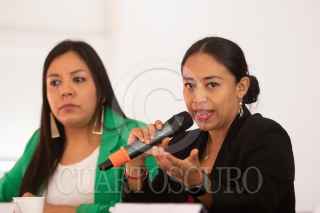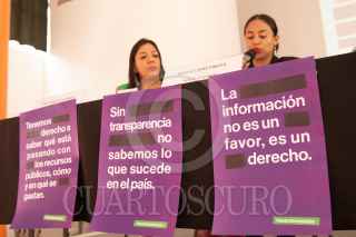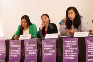 CIUDAD DE MÉXICO, 11JULIO2023.- Itzel Checa Gutiérrez; Mayra López Pineda de Article 19 México; Efraín Tzuc Salinas, periodista de Quinto Elemento LAB, y Diego de la Mora analista de FUNDAR, se pronunciaron para que la Suprema Corte de Justicia de la Nación vote en contra del proyecto de sentencia de la ministra Loretta Ortiz que niega que el Senado haya caído en omisión de sus funciones al no designar a los tres integrantes del INAI que faltan de este organismo y que debido a esta razón no pueda sesionar. FOTO: MOISÉS PABLO/CUARTOSCURO.COM